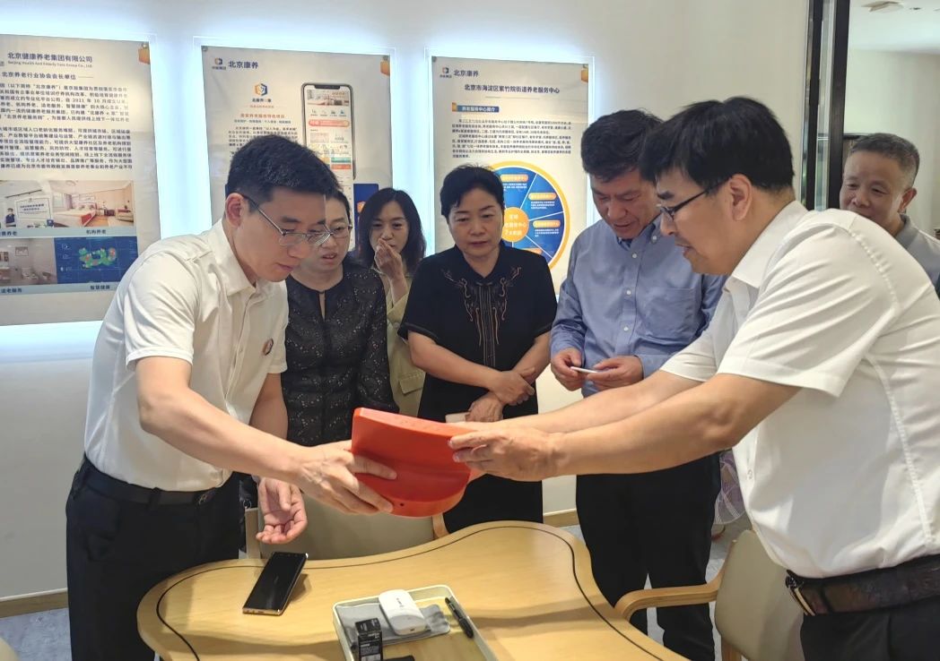 在工作人员的详细介绍下,同仁堂调研团队参观了养老服务中心的智慧健康管理中心、膳食营养指导中心、服务监测调度中心、全龄照护服务中心等多服务模块,对其创新服务管理标准、数智化、精准化健康管理设备和线上线下联动服务方式有了深入的了解和体验。京能集团围绕“居、医、养、乐、食”等核心需求而建立的满足长者日常健康管理、综合评估、巡视诊疗、药品管理、中医理疗、康复服务、绿医通道等服务体系与同仁堂健康药业公司的现代养生理念和创新服务标准不谋而合,为双方后续的深入合作提供了坚实基础和有力保障。